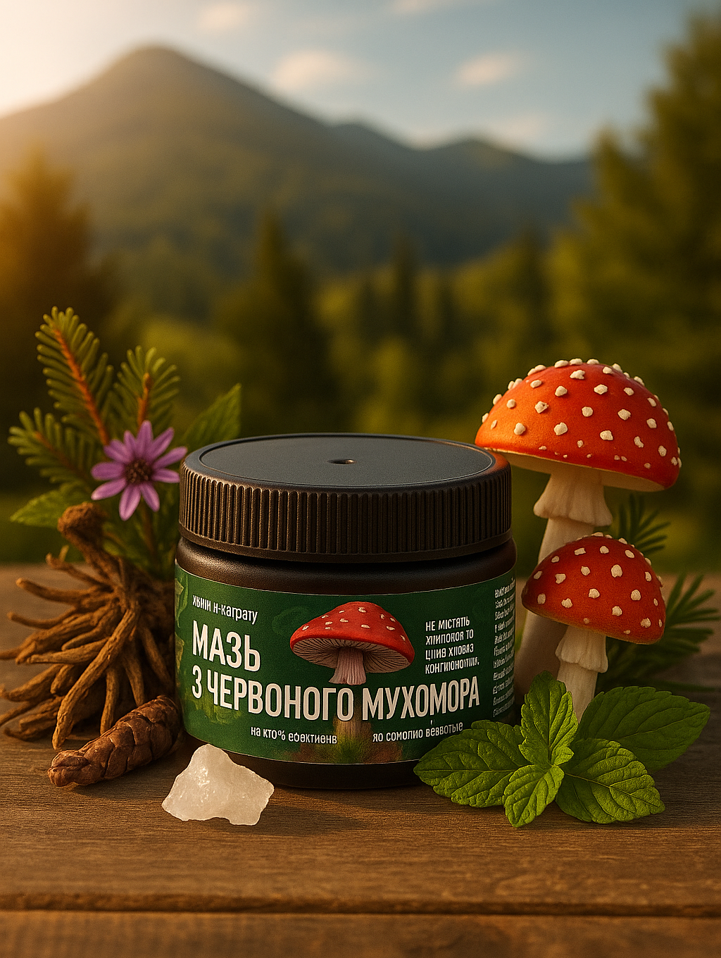 Сьогодні ми відновили стародавній рецепт і перетворили його на мазь з червоного мухомора, створену в серці Карпат. Повністю натуральна, без жодної хімії, вона наповнена енергією гір та силою природи — відновлює легкість рухів, знімає втому та напруження